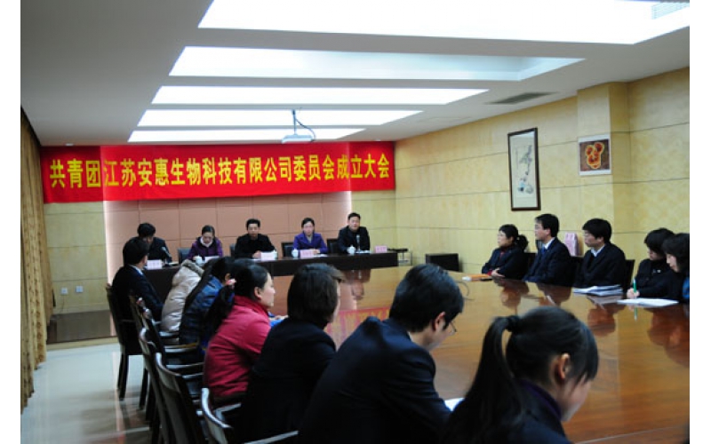 2009年3月3日,共青團江蘇安惠生物科技有限公司委員會成立大會在安惠公司中會議室舉行。共青團南通市委副書記趙新葉、共青團南通市委組織部部長顏海燕、共青團開發區委書記李宏圖等出席會議。