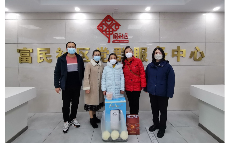 2023年1月12日,在南通市開發區富民社區黨委書記黃愛飛的陪同下,安惠公司副董事長陸漢萍帶著安潔空氣凈化器等物資來到富民社區,幫助陸同學圓夢。